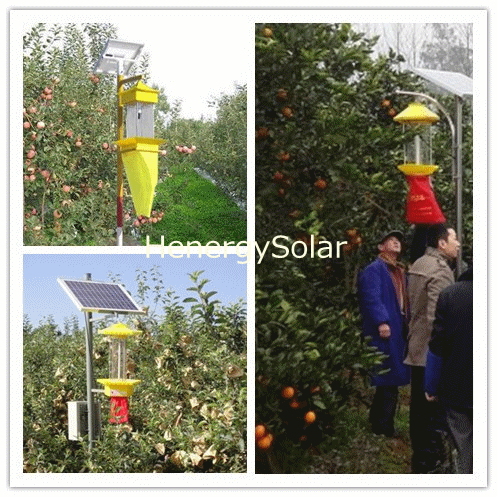 太陽(yáng)能光伏防蟲(chóng)害系統(tǒng)是利用太陽(yáng)能電池板作為用電來(lái)源,其將白天太陽(yáng)能發(fā)的電貯存起來(lái),晚上放電給殺蟲(chóng)燈具,供其工作。太陽(yáng)能光伏防蟲(chóng)害系統(tǒng)是利用365±50nm波長(zhǎng)紫外光對(duì)昆蟲(chóng)具有激備較強(qiáng)的趨光、趨波、趨色、趨性的特性原理,確定對(duì)昆蟲(chóng)的誘導(dǎo)波長(zhǎng),研制專(zhuān)用光源,利用放電產(chǎn)生的低溫等離子體,紫外光輻射對(duì)害蟲(chóng)間生的趨光興奮效應(yīng),引誘害蟲(chóng)撲向燈的光源,光源外配置高壓擊殺網(wǎng),殺死害蟲(chóng),使害蟲(chóng)落下專(zhuān)用的接蟲(chóng)袋內(nèi),達(dá)到滅殺害蟲(chóng)的目的。