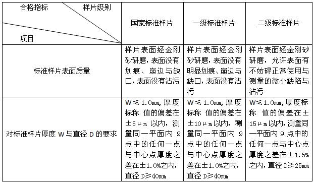 標(biāo)準樣片的各項指標(biāo)要求: