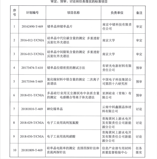 11月15日下午,全體委員終審2018年度審定完成的標準項目賀論證了2018-2019年度半導體材料標準計劃項目。全體委員分組審定預(yù)審、討論和任務(wù)落實《鍺單晶和鍺單晶片》等10項標準。