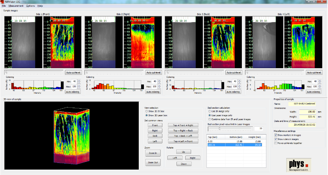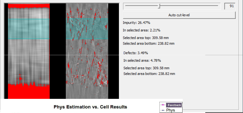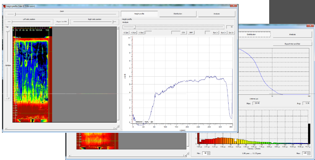 PL光致發(fā)光檢測模式中,集成了用戶通常檢測所需的少子檢測、彩色掃描標(biāo)定(color maps)、柱狀圖分布等。另外硅塊掃描檢測的缺陷百分比和雜質(zhì)百分比計算分析將為硅片生產(chǎn)效率的提升提供重要支撐。