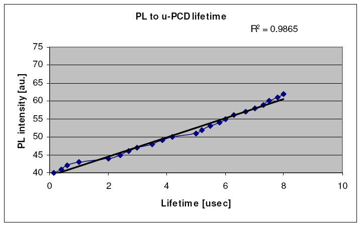 和傳統(tǒng)的微波光電導(dǎo)衰減(μ-PCD,Microwave Photoconductive Decay)測試結(jié)果的一致性比較。