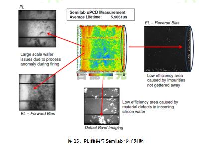 PL系統(tǒng)可以分析整個(gè)面及內(nèi)部指定位置的少子壽命,并可以分析不同壽命的原因。