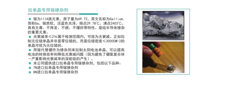 ■ 8N進(jìn)口拉單晶專(zhuān)用鎵摻雜劑