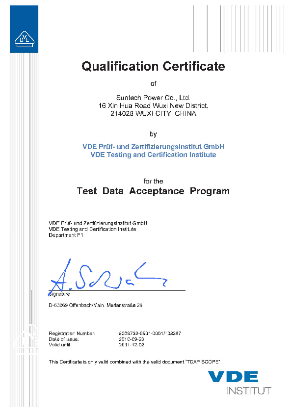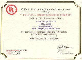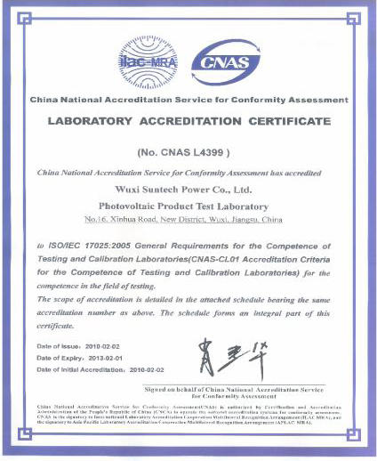 同時(shí)尚德光伏組件檢測(cè)實(shí)驗(yàn)室是中國第一個(gè)頂尖水準(zhǔn)檢測(cè)實(shí)驗(yàn)室,并獲得Underwriters Laboratories (UL) 機(jī)構(gòu)授予該實(shí)驗(yàn)室見證測(cè)試程序 (WTDP) 證書。